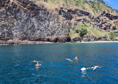 We can stop to dive in the clear waters offshore or anchor in a nice bay for swimming,
