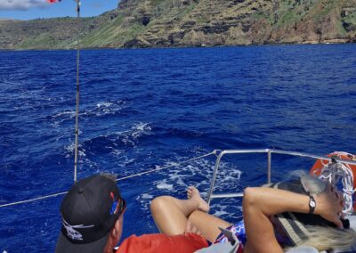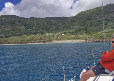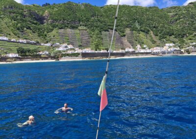 On the first day we meet in Ponta Delgada and after a small briefing regarding the boat and its safety amenities we start sailing towards Santa Maria. We will need around 10 hours to get there, and you can use this time to look for dolphins or to learn some sailing skills. We will stop at Marina Vila do Porto. On the second day we will sail around Santa Maria while on the third day you can explore Santa Maria on your own by land. On the fourth day we come back to Sao Miguel. If you choose 4-days tour, we return to Ponta Delgada and finish the tour. If you want 5-days tour, we sail to Povoacao and on the 5 th day we come back to Ponta Delgada, sailing on the south coast of Sao Miguel, passing by Vila Franca islet, Praia da Caloura and Sao Roque islet. We can stop to dive in the clear-waters offshore or anchor in nice bays for swimming, snorkelling or stand-up paddling. You can also sunbathe on our comfortable deck while tasting some Azorean snacks and drinks.